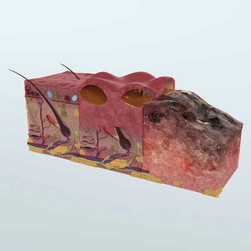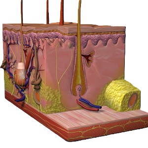 Cut section of skin Anat
